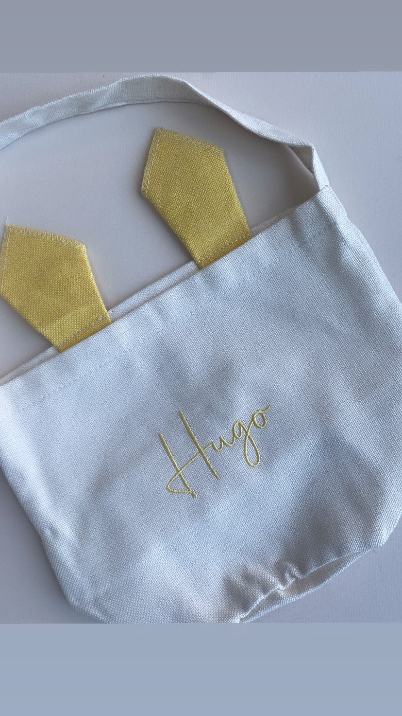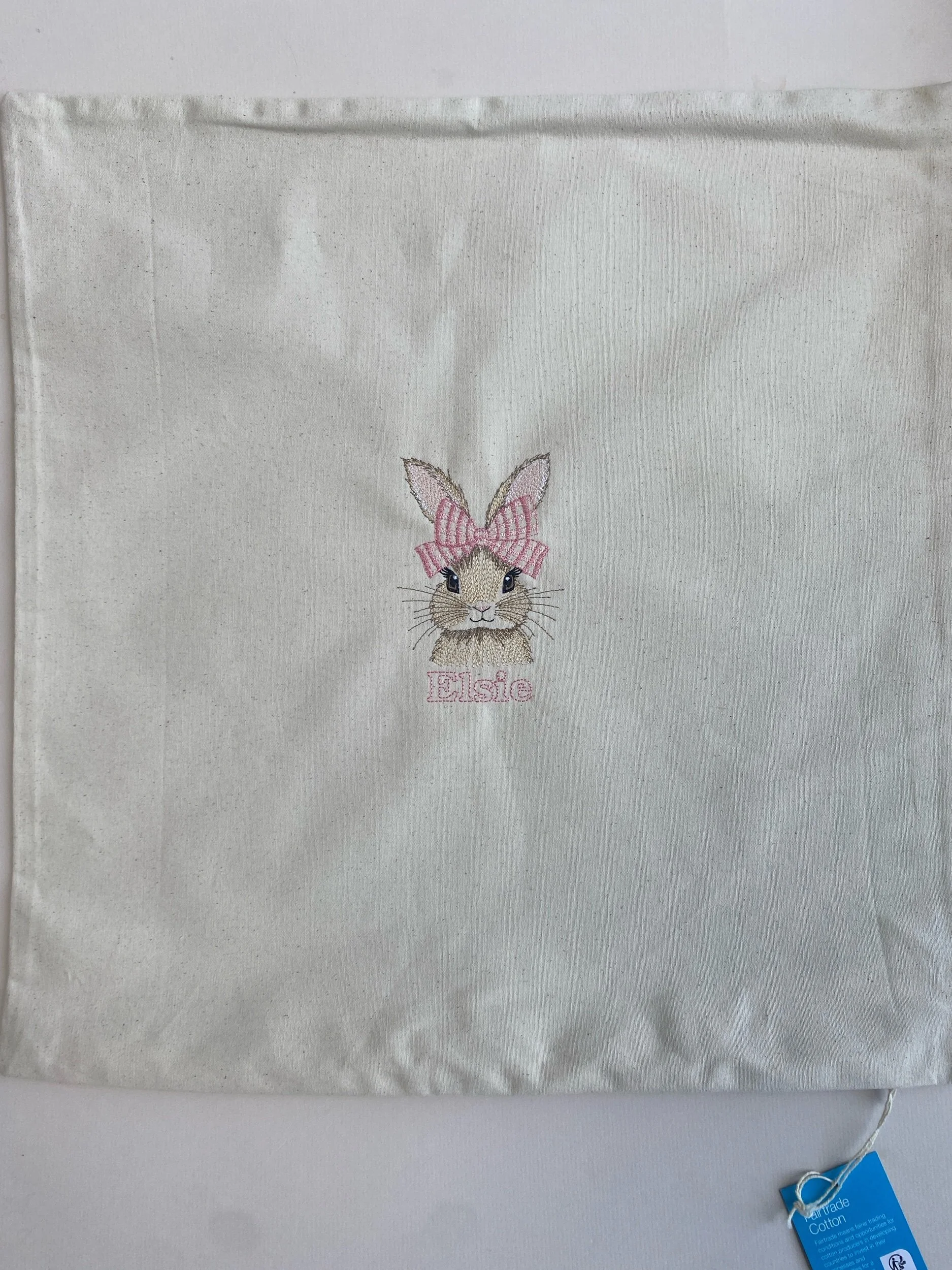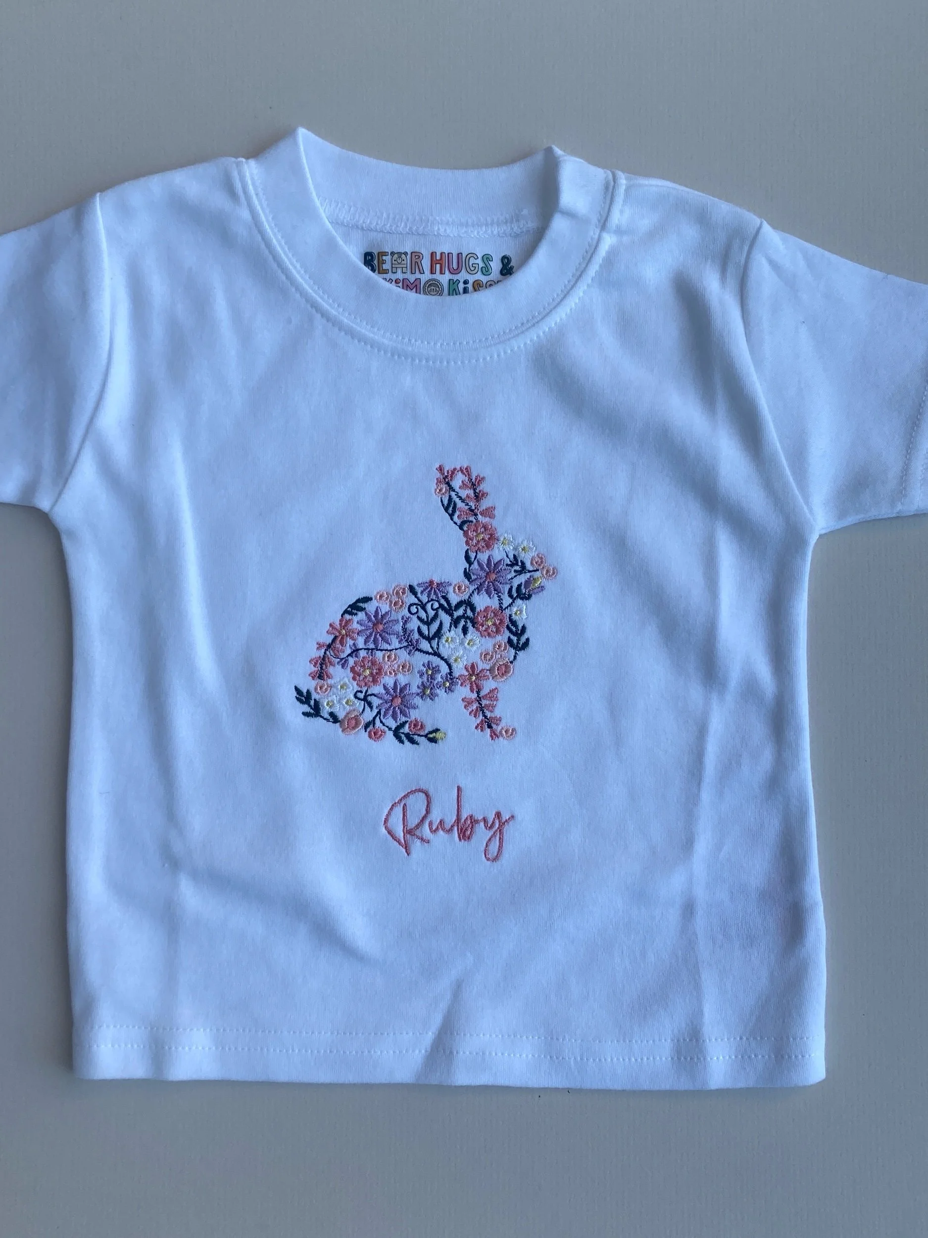 Fully embroidered with our hairband bunny - with the option to personalise in pink autograph font.